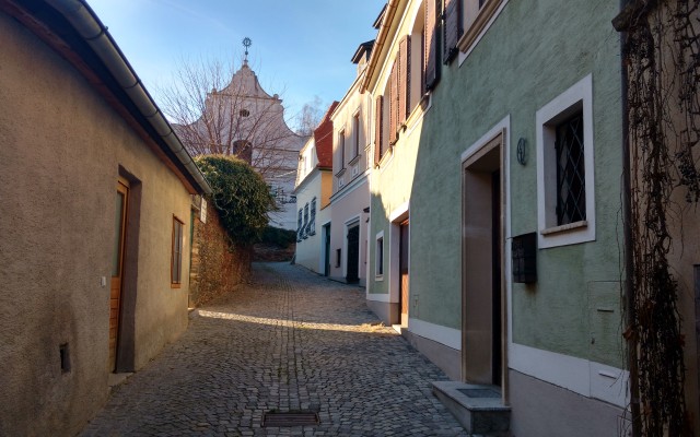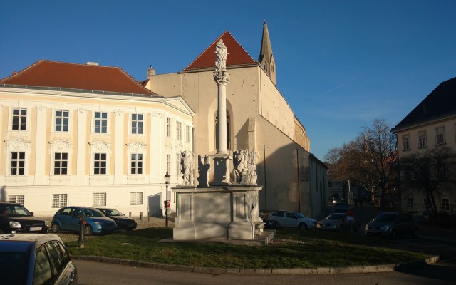 Danach ging es die Torgasse und den Stadtgraben den Berg hinunter, um dann die Frauenberggasse wieder hinauf zur Piaristen Kirche zu gelangen. Dieser „Abstecher“ kann auch getrost ausgelassen werden und man kann bequem über die Piaristengasse zur Kirche gelangen. Von der Piaristen Kirche hat man einen schönen Blick auf Krems und sollte bei jedem Stadtrundgang von Krems dabei sein!