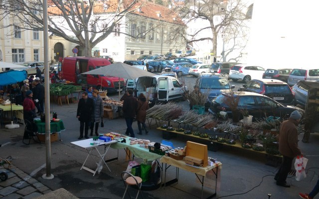Mich führte der Weg danach zum Hohen Markt und vorbei an der Gozzo Burg hinunter zum Pfarrplatz. Am Pfarrplatz gibt es jeden Samstag bis 12:00 einen kleinen Markt, wo man frisches Obst und Gemüse, aber auch Fisch und Nudeln kaufen kann. Je nach Saison gibt es auch noch Blumen, Adventskränze, Palmkatzerl und noch vieles mehr.