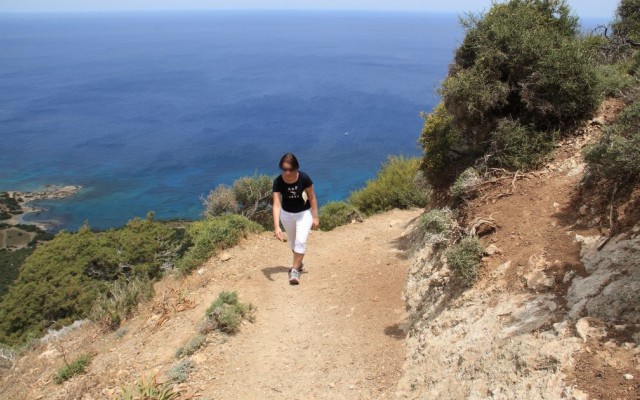 Wir haben uns für den „Aphrodite Trail“ entschieden. Der Weg ist gut beschildert, und führt am Anfang entlang der Straße zur Halbinsel Akamas, die vor allem für geführte Jeep Touren verwendet wird. Nachdem man die Straße verlassen hat geht es auf einem schmalen Pfad bergauf immer Richtung Gipfel des Moutti tis Sotiras. Der Pfad ist nicht sehr schwierig, aber man sollte auf alle Fälle festes Schuhwerk tragen!