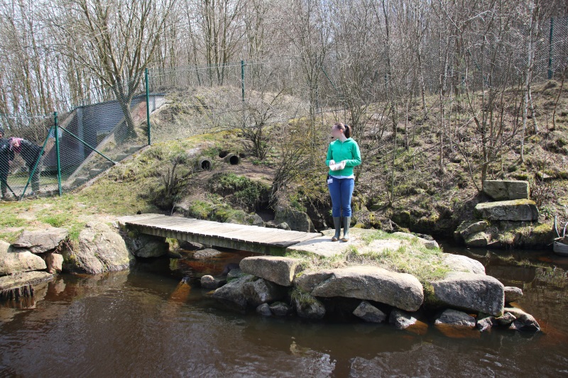 Es gibt derzeit (2018-04) 2 Gehege mit Fischottern. Die jungen Tiere sind in einem kleineren Gehege untergebracht und waren aktiver als die 2 Älteren im großen Gehege. Bei der Fütterung beim großen Gehege, um 13:30, hat sich das Weibchen leider überhaupt nicht blicken lassen, war wohl noch müde und satt vom Vormittag. Bei den Jungtieren war dafür Action pur!