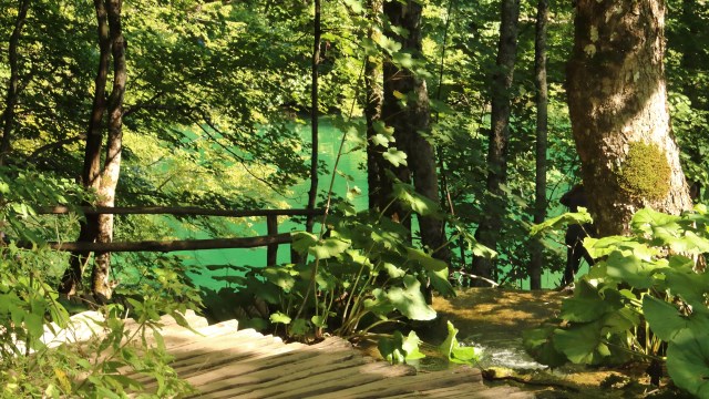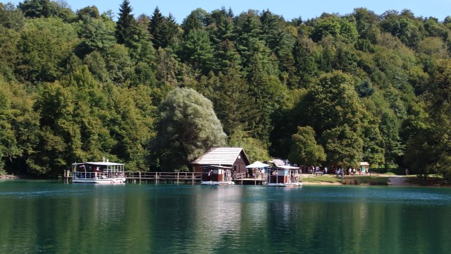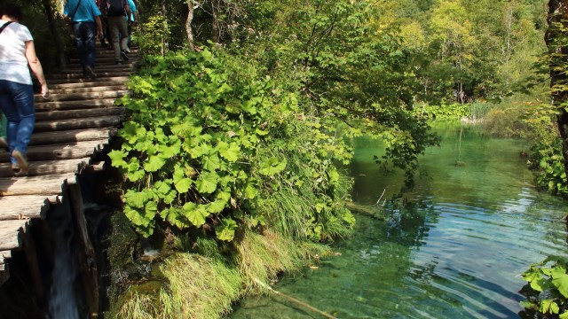 Kurz nachdem Eingang hat man schon einen schönen Ausblick auf die Seelandschaft der Unteren Seen und auch auf die Menschenmassen, die sich auf Stegen dicht an dicht drängen.